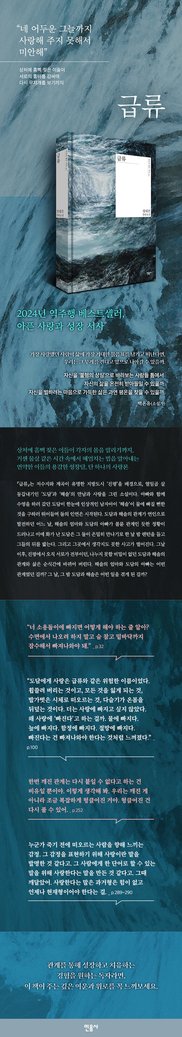2020년 《한경신춘문예》에 장편소설 이 당선되어 작품 활동을 시작한 소설가 정대건의 두 번째 장편소설 <급류>가 오늘의 젊은 작가 시리즈 40번으로 출간되었다. <급류>는 저수지와 계곡이 유명한 지방도시 ‘진평’을 배경으로, 열일곱 살 동갑내기인 ‘도담’과 ‘해솔’의 만남과 사랑을 그린 소설이다.