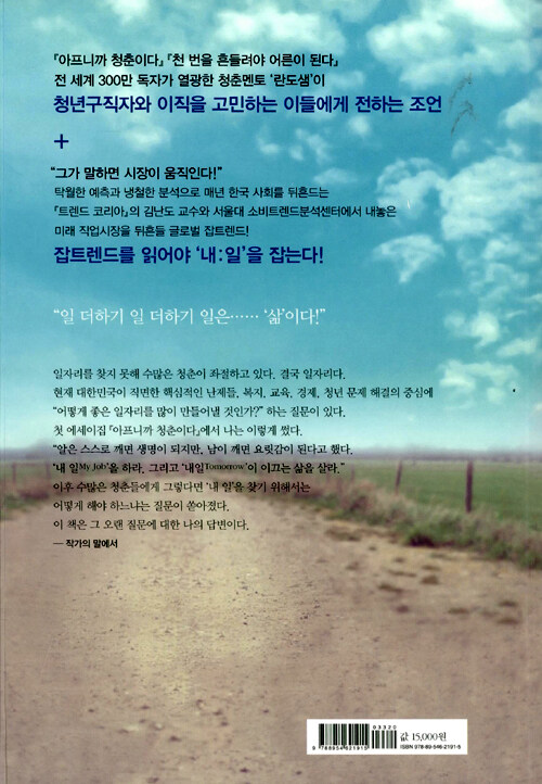 그간 청년들의 멘토로서 대한민국 청춘을 위로하고, 트렌드 전문가로서 한국 사회의 변화와 흐름을 날카롭게 진단해온 김난도 교수가 청년들의 가장 큰 현실적인 아픔이자 고통인 ‘일자리 문제’에 대해 이야기 하는 책이다.