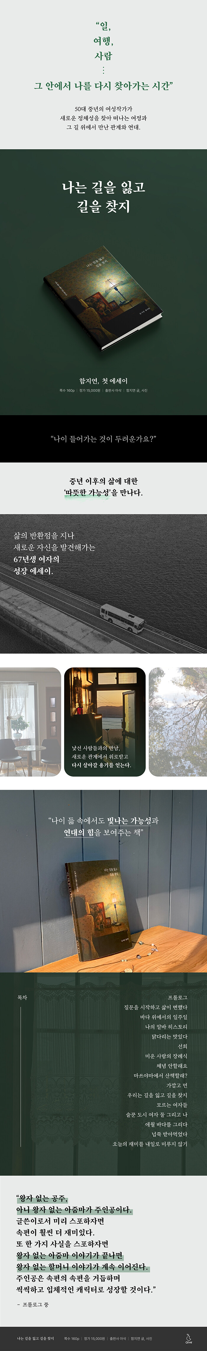50대의 중년, 인생 후반기에 길을 잃은 후, 새로운 길을 찾아가는 여정과 그 길 위에서의 모험, 도전, 사람과의 연대를 통해 희망을 전하는 이야기.