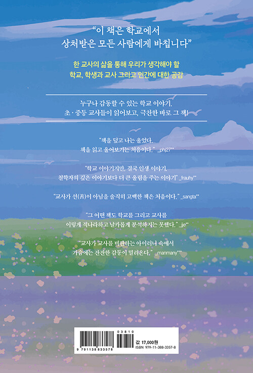 이상훈 저자의 자전적 소설로, 실제 교사로 재직 중인 저자의 교육 환경에 대한 문제 인식을 첨예하게 담아냈다. 저자와 동일한 이름의 주인공 ‘상훈’은 교사를 꿈꾸던 학창 시절부터 교단에 서기까지 불합리한 일들을 지속해서 마주하게 된다. 그렇게 어렵게 얻은 ‘교사’라는 자리에서도 문제들을 끊임없이 솟아나는데….