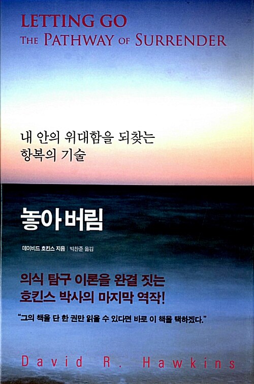 의식 탐구 이론을 완결 짓는 호킨스 박사의 마지막 역작. 호킨스 박사가 ‘놓아 버림 기법’, ‘항복 기제’라 명명한 이 기술은 우리의 의식 수준을 상위 단계로 끌어올려 결국은 깨달음에 이를 수 있도록 돕는 결정적 도구다. 따라서 이 책은 그간 호킨스 박사가 연구해 온 의식 탐구 이론의 완결판이라 할 수 있다.