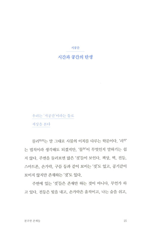 ‘물리’라는 새로운 언어를 통해 우리 존재와 삶, 죽음의 문제부터 타자와의 관계, 세계에 관한 생각까지 새로운 틀에서 바라볼 수 있게 안내해주는 책이다.
