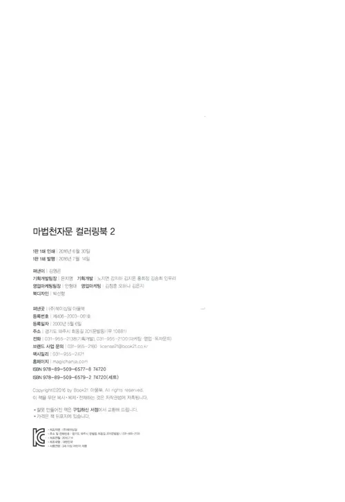 마법천자문 속 재미있는 그림들을 추려 만든 컬러링북. 이 책은 아이가 하나라도 더 배우기를 바라는 부모님의 마음을 반영하여, 색을 칠하는 동안 저절로 한자 학습이 가능하도록 기획했다. 한자의 뜻을 그림으로 표현한 장식 한자, 본문과 어우러져 등장하는 필수 한자들을 색칠할 수 있도록 꾸며둔 것이다. 읽다 보면 저절로 한자가 학습됐던 마법천자문의 가장 큰 장점을 마법천자문 컬러링북에도 빠짐 없이 담았다.