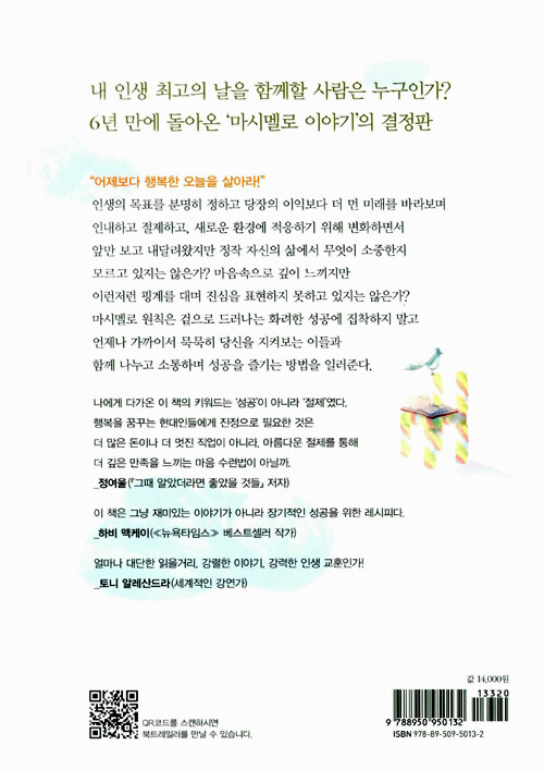 <마시멜로 세 번째 이야기>가 전하는 생생한 감동과 재미, 그리고 오래도록 변치 않을 성공 메시지를 마음속 깊이 새기며 변화하는 환경에 맞춰 자신과 주위를 한 번만 돌아보라. 진정한 삶의 가치는 어디에서 시작되는가? 그리고 어떻게 해야 성공과 행복을 조화시켜나갈 수 있을까?