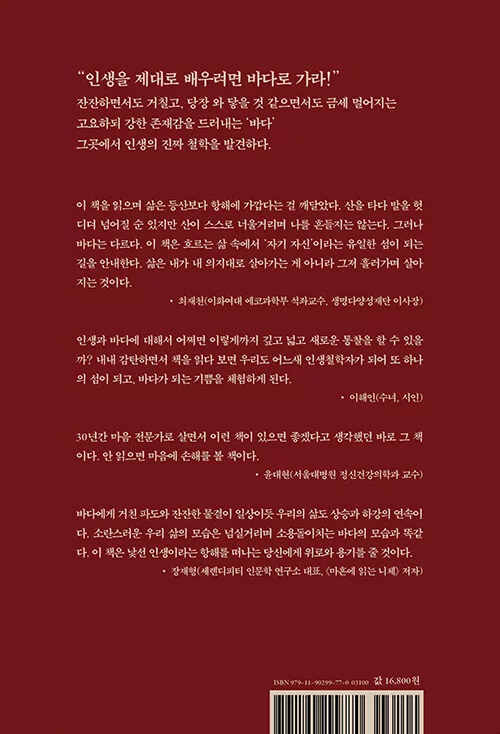 2022년 프랑스 최고의 철학과 교수로 꼽힌 로랑스 드빌레르의 인문에세이로 출간 후 프랑스 현지 언론의 극찬을 받으며 아마존 베스트셀러에 올랐다. 저자는 낯선 ‘인생’을 제대로 ‘항해’하려면 바다를 이해하라고 조언한다. 바다가 우리의 삶과 가장 흡사한 자연이기 때문이다. 고난과 역경, 환희와 기쁨, 탄생과 죽음이 공존하는 바다가 던지는 철학적 사유에 귀를 기울이다 보면 앞으로 어떻게 살아야 하는지 그 답을 찾을 수 있다.