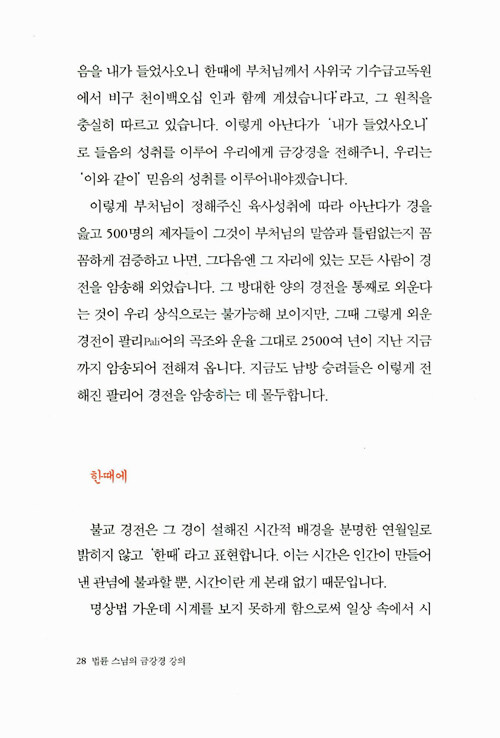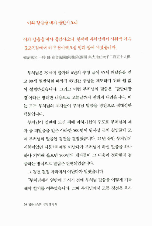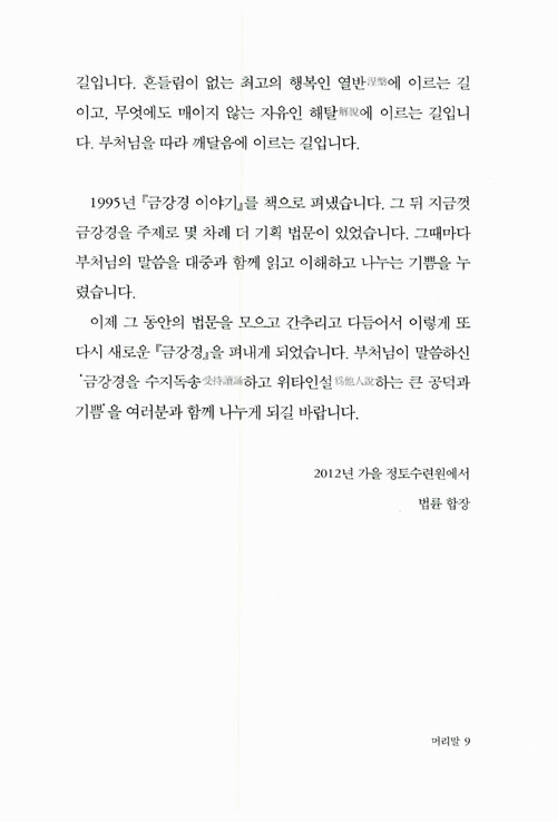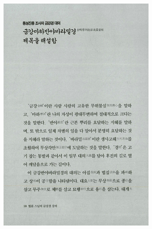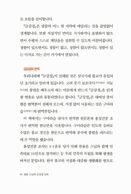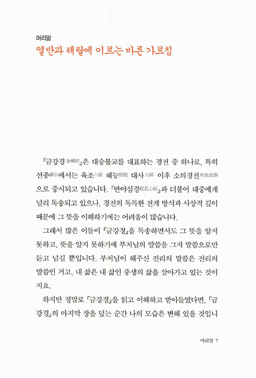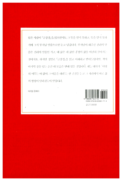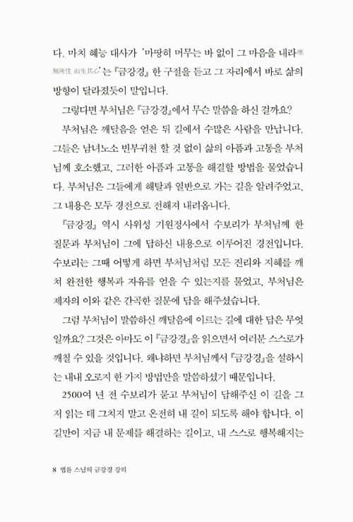 즉문즉설 강연과 <기도> <깨달음> <스님의 주례사> 등으로 널리 알려진 법륜스님의 경전강의 시리즈 새 책이다. 어렵다고 생각되는 경전을 법륜스님 특유의 명쾌한 화법으로 알기 쉽게 풀이했다. 2002년부터 1000회가 넘는 <즉문즉설>방식의 대중강연을 통해 남녀노소와 종교·이념을 뛰어 넘은 국민의 멘토로 활동하고 있다. 이 즉문즉설 해답의 기준은 바로 <금강경>이었다.
