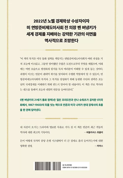 이토록 중요한 미국의 통화 정책을 결정하는 기관이 미국 연방준비제도다. 그리고 벤 버냉키는 역대 연방준비제도 의장 중에서 가장 탁월한 성과를 거둔 것으로 평가받는다. 《벤 버냉키의 21세기 통화 정책》은 최고의 의장이었던 벤 버냉키 본인이 직접 연방준비제도의 모든 것을 낱낱이 파헤친 책이다.