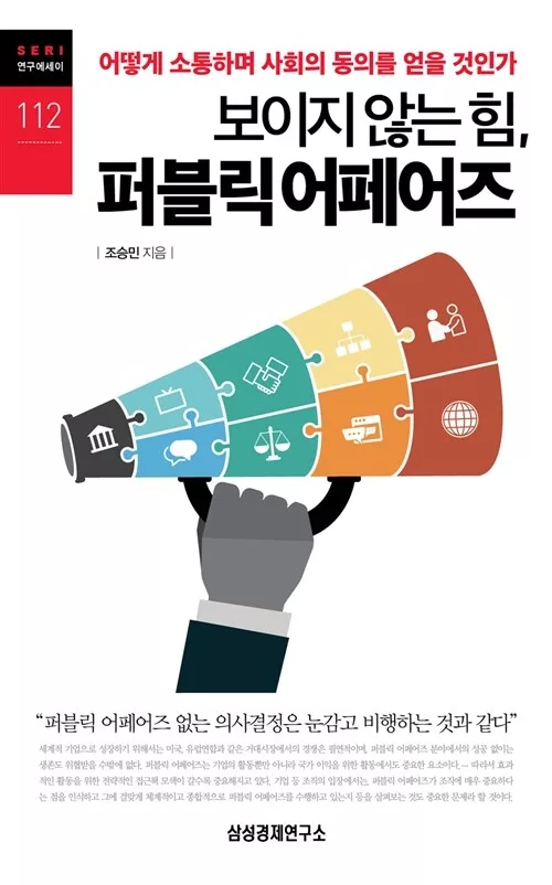 SERI 연구에세이 112권. 아직도‘퍼블릭 어페어즈(public affairs)’라고 하면 은밀하게 진행되는‘로비’만을 떠올리는가? 퍼블릭 어페어즈는 대(對)정부 활동뿐 아니라 이미지 광고, 사회적 기여 등을 포괄하는 종합 활동으로 범위와 역할이 확대되어왔다. 공감과 동의를 얻기 위해 세상을 설득하는, 시장 밖에서 펼치는 비시장 전략이라 할 수 있다.
