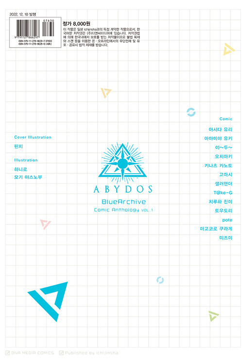 대인기 스마트폰 RPG 『블루 아카이브』의 첫 공식 코믹 앤솔로지. 『블루 아카이브』의 세계를 더욱 즐길 수 있는 코믹스. 대책위원회나 흥신소 68을 포함해, C&C, 정의실현부, 게임개발부, 미식연구회 등 『키보토스』 학생들의 반짝반짝 빛나는 학원 생활이 시작된다.