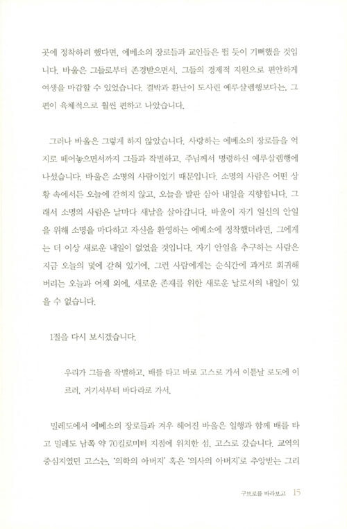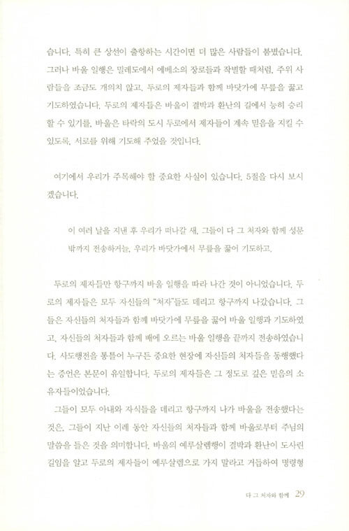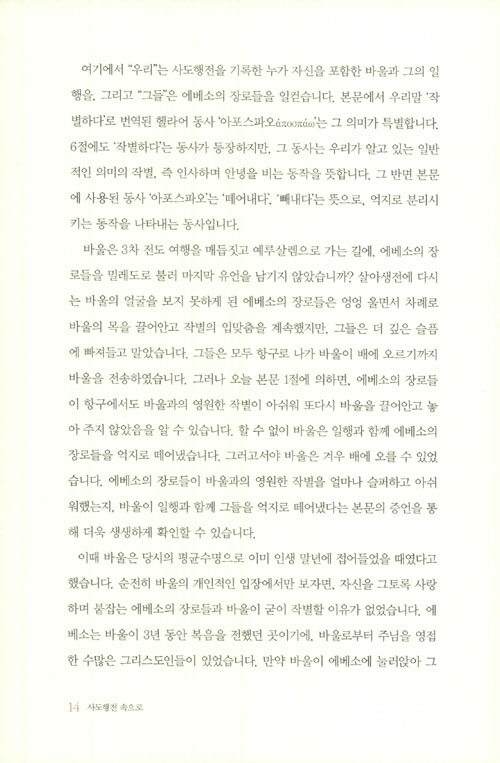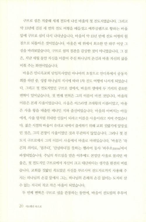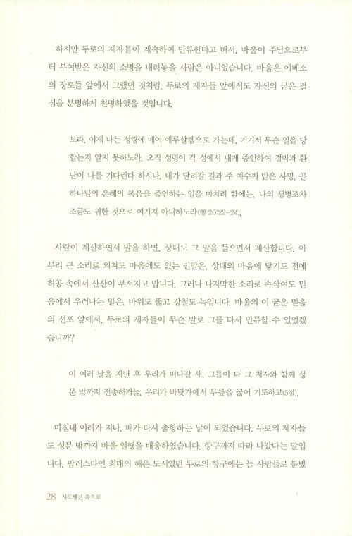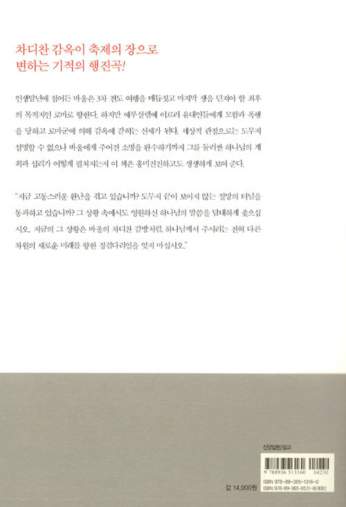 하지만 예루살렘에 이르러 유대인들에게 모함과 폭행을 당하고 로마군에 의해 감옥에 갇히는 신세가 된다. 세상적 관점으로는 도무지 설명할 수 없으나 바울에게 주어진 소명을 완수하기까지 그를 둘러싼 하나님의 계획과 섭리가 어떻게 펼쳐지는지 이 책은 흥미진진하고도 생생하게 보여 준다.