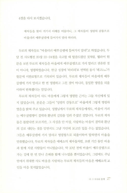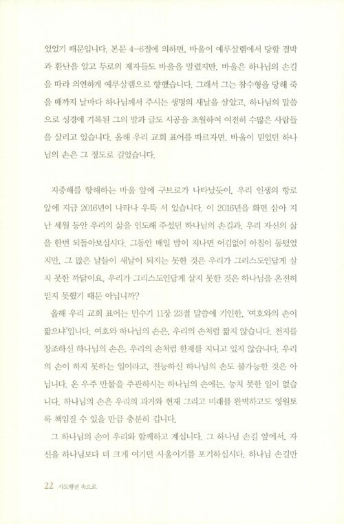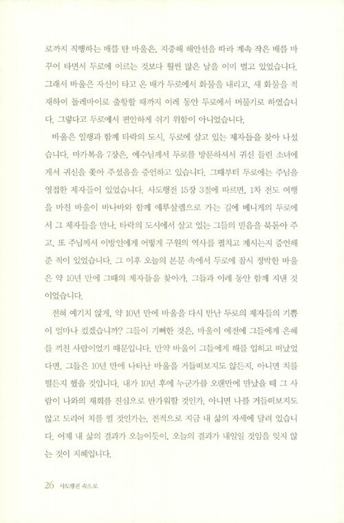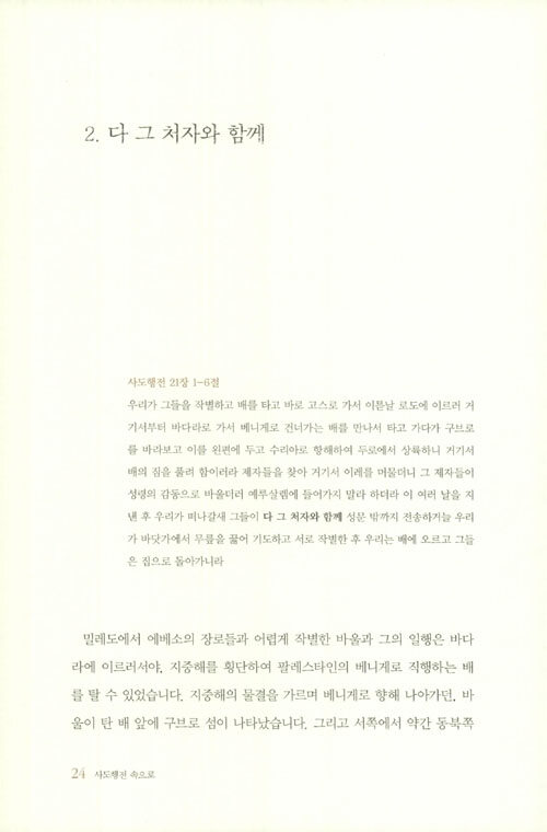 100주년기념교회 이재철 목사가 2016년 1월 3일부터 8월 21일까지 사도행전 21, 22, 23장을 본문으로 주일예배에서 설교한 내용을 엮은 것이다. 인생말년에 접어든 바울은 3차 전도 여행을 매듭짓고 마지막 생을 던져야 할 최후의 목적지인 로마로 향한다.