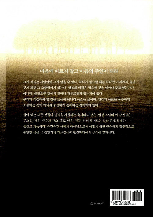 2006년, 법정 스님의 출가 50년을 기념하여 출간된 잠언집이다. 단순하고 청빈한 생활의 실천가이자, 자유인의 표상인 법정 스님이 남긴 글과 법문들 중에서 130여 편을 가려 뽑았다. 법정 스님과 가까이 지내는 류시화 시인이 엮고, 사진작가 마이클 케나가 찍은 사진을 함께 실었다.
