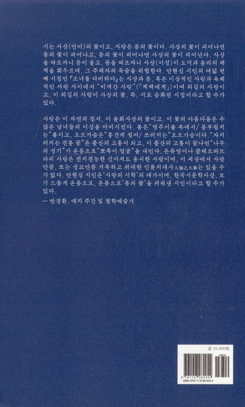 안현심 시인의 여덟 번째 시집. 이상적인 사랑을 노래한 시이며, 이상적인 사랑이‘사상의 꽃’으로 피어난 시다. 표제시인 [소녀를 다비하다]는 시인의 이상적인 사랑과 그 비극적인 결말을 가장 잘 드러내 보여준다.