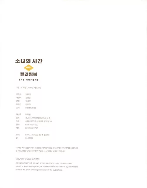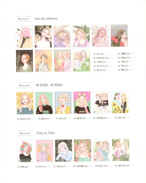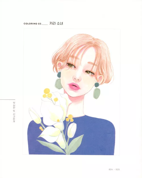 소녀들의 특별한 순간순간을 포착해 표현한 색연필 인물화 컬러링북으로, 화보를 찍듯 포즈를 취하는 소녀, 회상에 잠기거나 멍하니 생각에 빠져드는 듯한 몽환적인 시선의 소녀, 두 명의 소녀가 등장하는 구도나 섬세하고 특색 있는 배경이 묘사되는 구성 등 밀도 있고 다채로운 모습으로 소녀들을 표현하고 있다.
