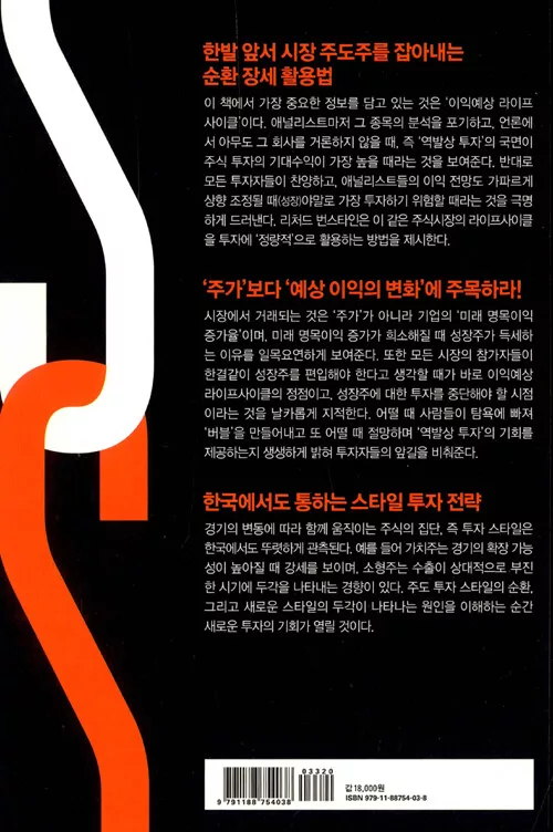 이 책에서 가장 중요한 정보를 담고 있는 것은 ‘이익예상 라이프사이클’이다. 애널리스트마저 그 종목의 분석을 포기하고, 언론에서 아무도 그 회사를 거론하지 않을 때, 즉 ‘역발상 투자’의 국면이 주식 투자의 기대수익이 가장 높을 때라는 것을 보여준다. 반대로 모든 투자자들이 찬양하고, 애널리스트들의 이익 전망도 가파르게 상향 조정될 때야말로 가장 투자하기 위험할 때라는 것을 극명하게 드러낸다.