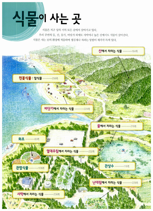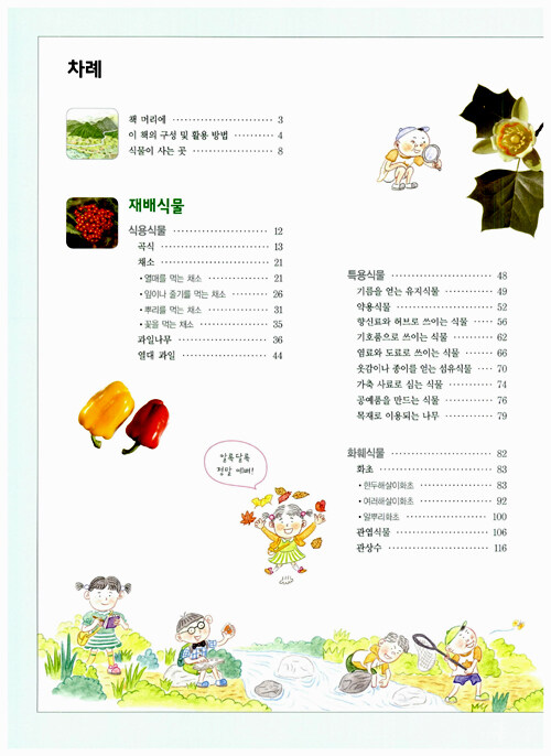 우리 주변에서 쉽게 만나며 교과서에서도 볼 수 있는 707종의 식물을 사진에 담았고, 식물 종마다 과명, 학명, 크기, 꽃 피는 시기, 생태 특징을 정확하게 소개하였다. 생활에 이용하는 ‘재배식물’과 들, 산, 물 등의 ‘식물이 사는 곳’, 씨식물과 겉씨식물 등의 ‘식물의 구분’을 기준으로 식물을 수록해 주변 식물의 이름과 생태를 쉽게 찾고 확인할 수 있다.