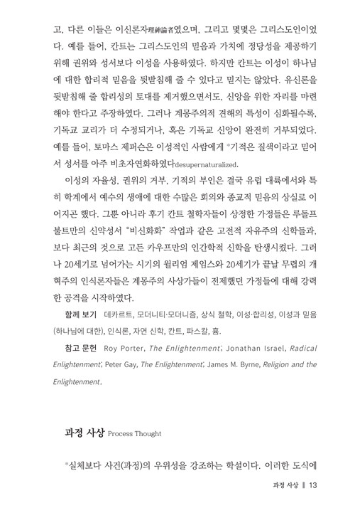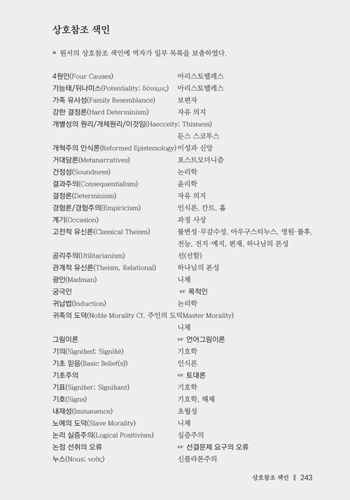 철학을 중심으로 신학을 다루는 책이 없는 것은 아니지만, 대부분 글이 장황하여 읽는데 많은 에너지가 소모될 뿐만 아니라, 다루지 않는 분야들도 많이 있다. 이 책은 한 주제를 간략히 다룸으로써 접근이 용이할 뿐만 아니라, 신학에 영향을 미친 주요 주제들을 거의 다 다루었고, 또 각 표제어마다 철학과 신학의 관계를 조명하고 있다. 학생은 물론 연구자들에게도 공부의 무게를 한결 가볍게 덜어줄 것이다.