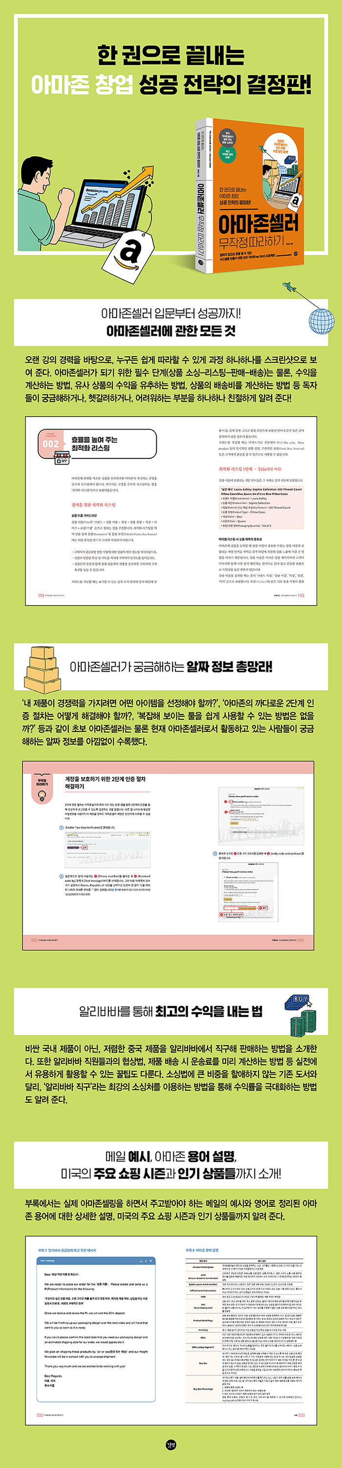 전 세계 온라인 마켓 중 가장 영향력이 크고, 가장 큰 시장이라고 할 수 있는 아마존이라는 온라인 플랫폼에서 필자가 겪은 수많은 경험과 노하우를 바탕으로 아마존의 시작부터 판매를 통한 수익까지의 전반적인 사항을 초보자도 쉽게 따라할 수 있도록 구성했다. 온라인마켓에서 상품을 가져와 판매하는 것을 넘어 나만의 브랜드 판매를 통해 글로벌 기업으로 성장할 수 있는 방법을 통해 성공한 아마존셀러로서 오랫동안 살아남을 수 있는 비법을 알려 준다.