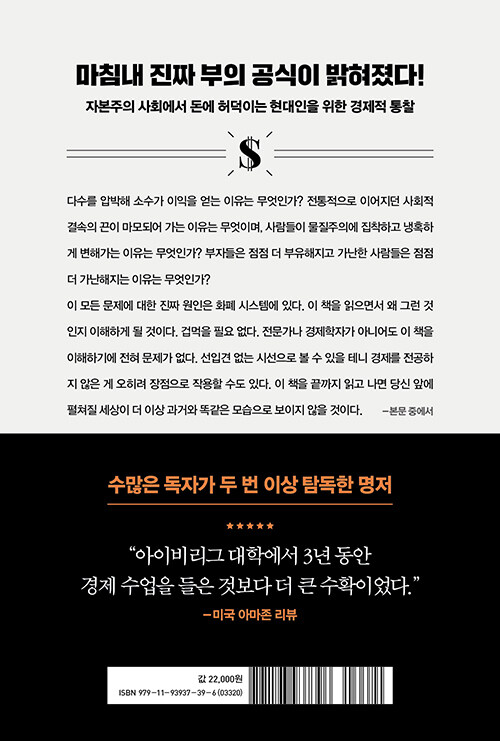 출간 이후 해외로 수출되며 스페인 아마존 등 경제 분야 베스트셀러 1위를 차지하고, 마크 파버를 비롯한 세계적 투자자와 경제학자들의 극찬을 받은 『왜 그들만 부자가 되는가』가 출간되었다. 그 어느 때보다 경제가 점점 어려워지고 있다. 찰나의 호황기가 지나면 기나긴 불황이 찾아오고 위기가 반복해서 나타난다. 하지만 급변하는 시대에도 부를 잃지 않는 사람들, 위기 속에서 부를 쌓는 이들이 존재한다. 반면 다수의 사람들은 이런 의문을 품은 채 살아간다. ‘다 잘 사는 것 같은데 왜 나는 돈이 없을까? 언제까지 열심히 일만 해야 할까? 자본주의 사회에서 경제적 계급은 어쩔 수 없는 필연적인 일일까?’