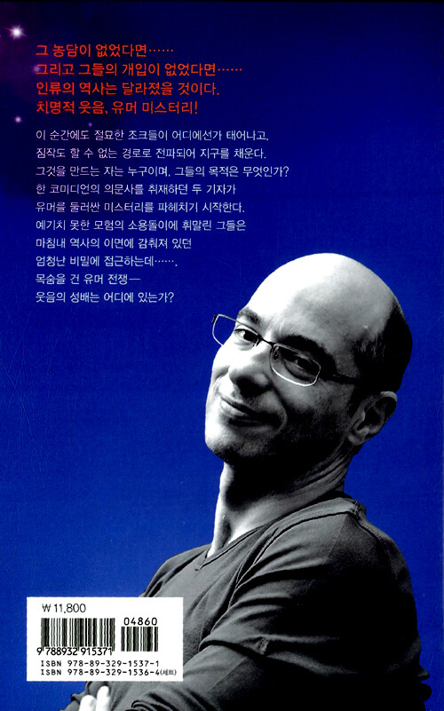 작가의 상상은, 우리가 일상 속에서 수없이 접하는 우스갯소리들이 어디에서 생겨나는 것일까 하는 의문에서 출발한다. 우리는 하루에도 몇 편씩 절묘한 유머와 조크를 접한다. 더없이 완벽한 구성을 갖고 있는 ‘작품’들이지만 작가는 없다. 혹시 누군가, 또는 어떤 조직이 그런 조크를 의도적으로 만들고 비밀리에 퍼뜨리는 것은 아닐까? 만약 그렇다면 그들은 누구이고 그들의 목적은 무엇일까? 이 질문들은 ‘인간은 왜 웃는가?’라는 하나의 근원적 질문에 맞닿아 있고, 이 근원적 질문에 대한 문학적 탐구가 바로 이 작품이다.