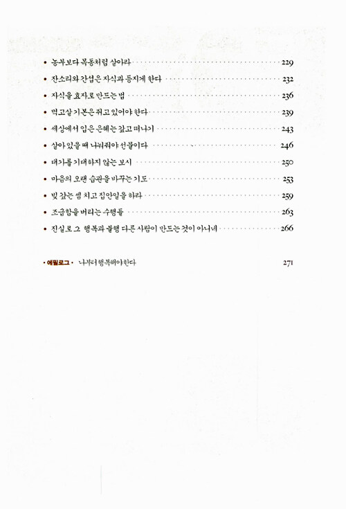 그렇다면 진정으로 성공한 인생, 아름다운 인생은 어떤 걸까? 스님은 세상에서 추구하는 성공과 상관없이 자기가 만족하면 그게 좋은 인생이라고 말한다. 어떤 일을 하는가는 그리 중요하지 않다. 인생의 주인은 바로 ‘나’로서 인생을 행복하게 할 책임도 있고 권리도 있다고 이야기한다. 그런데 자꾸 이런저런 이유를 붙여서 자신을 괴롭히면, 행복해야 할 내 인생을 내가 내팽개치는 것과 같은 거라고 따끔히 충고한다.