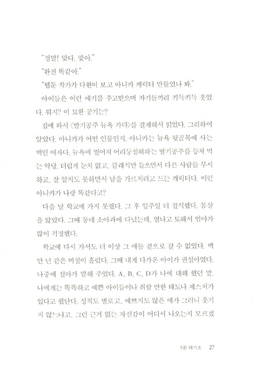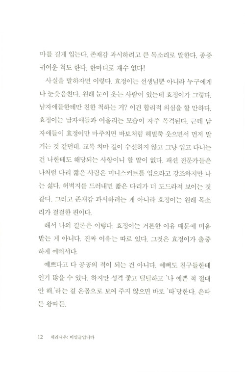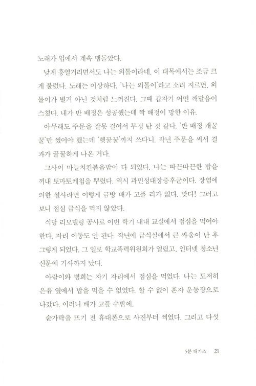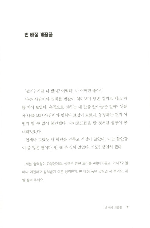 사람들은 나를 어떻게 생각하고 있을까, 나는 지금 어떻게 보일까, 나를 싫어하면 어쩌지. 타인의 시선에 흔들리고 또 흔들리다가 진짜 ‘나’를 감추고 만 경험이 누구에게나 있을 것이다. 특히 학교라는 폐쇄적인 공간에서 어떻게든 원만하게 친구 관계를 유지해야 하고 어떻게든 ‘따’가 되지 않아야만 하는 청소년들에게, 진짜 나 자신을 내세우는 일은 익숙하지 않을 수밖에 없다.