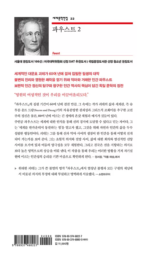 괴테가 24세에 쓰기 시작해 82세에 완성한 필생의 역작. 민음사 전집판으로 1997년에 새로 번역되어 신선한 우리말 감각이 살아 있으며, 자세한 주석과 해설을 곁들였다.