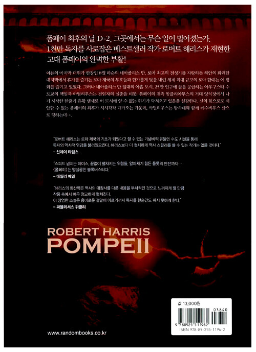 폼페이 최후의 날 48시간 전, 그곳에서는 무슨 일이 벌어졌는가를 추적하는 팩션. <당신들의 조국>, <이니그마>의 작가 로버트 해리스가 향락의 도시 폼페이의 최후를 소설 형식으로 재구성했다. 「뉴욕 타임스」 22주 연속 베스트셀러, 「선데이 타임스」 베스트셀러 1위를 기록한 바 있는 작품이다.