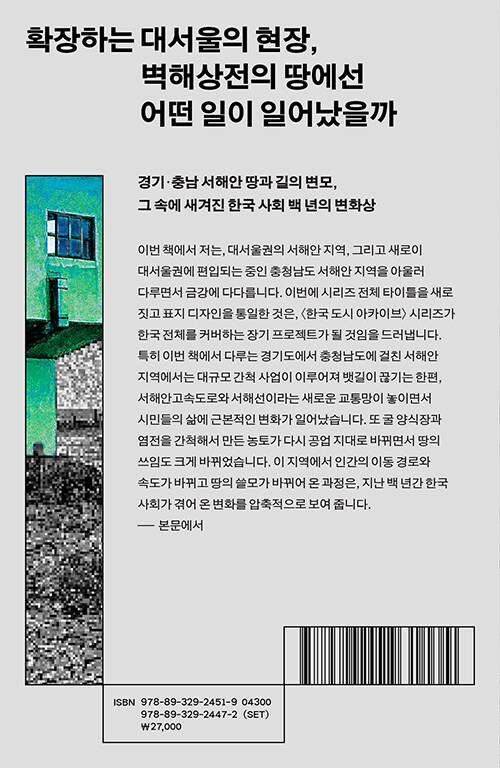그 네 번째 이야기, 『한국 문명의 최전선』에서는 경기 서해안 지역의 도시들을 거쳐 대서울권에 편입 중인 충청남도 서부로 간다. 충남 서부의 해안 지역은 지난 백여 년간 한국의 땅과 길, 그리고 우리 사회가 겪어 온 변화를 압축적으로 보여 준다. 확장하는 대서울권의 외곽, 충남 서부는 지금 어떤 변화를 맞고 있을까? 깊이 있고 풍성한 글, 생생하고 알찬 사진으로 가득한 『한국 문명의 최전선』에서 직접 확인해 보자.