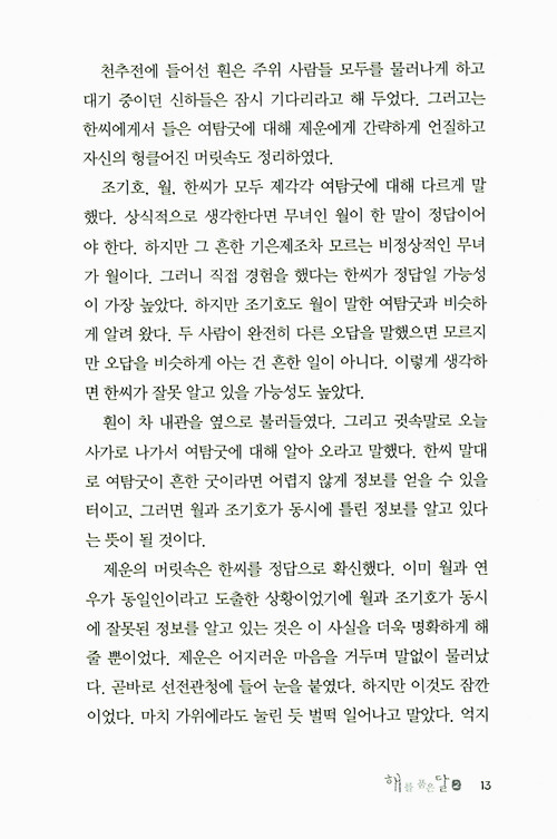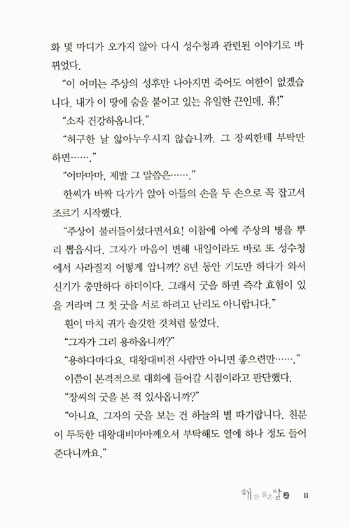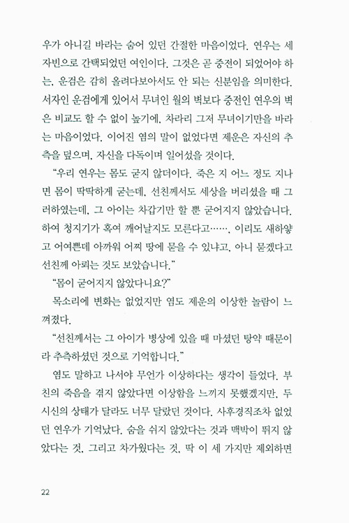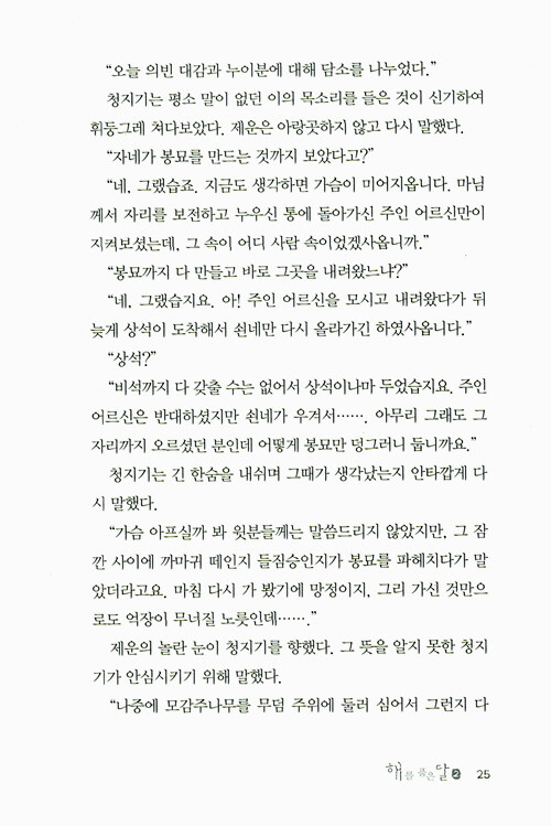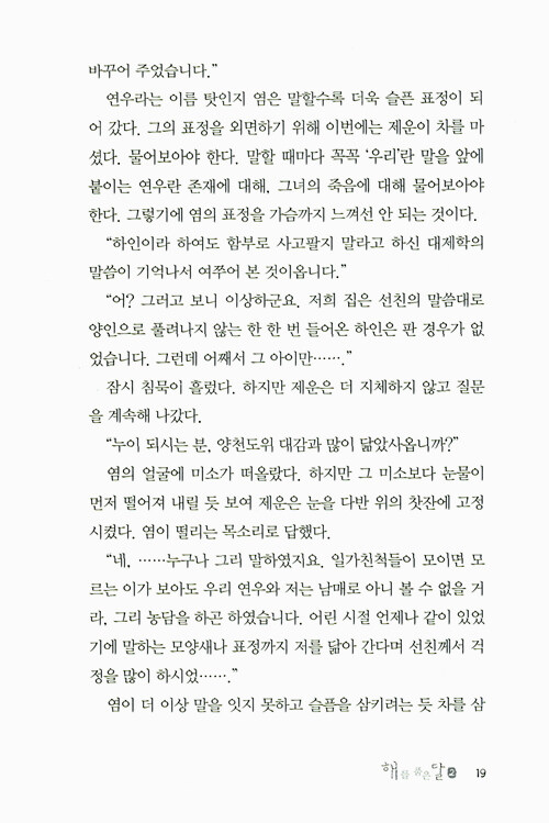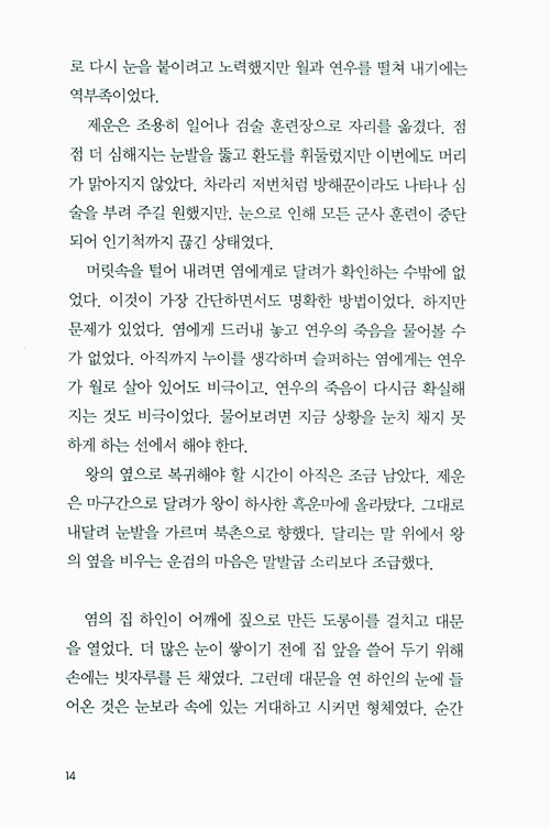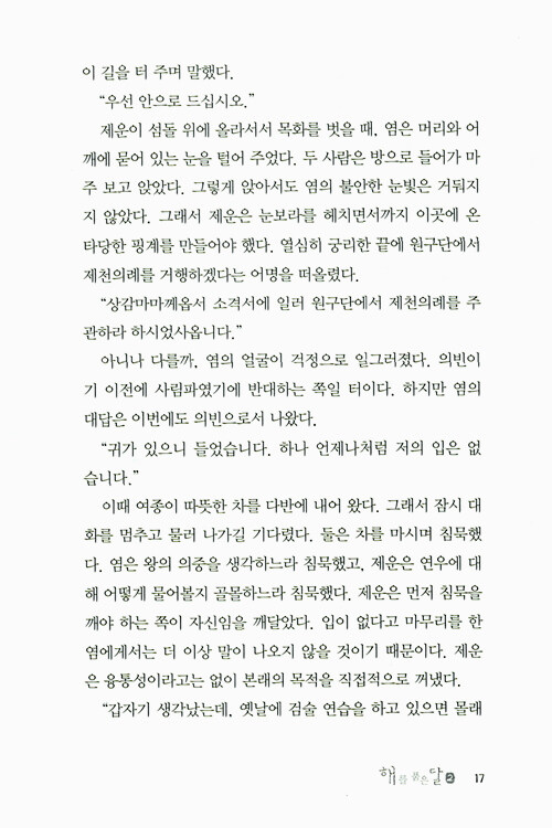 <성균관 유생들의 나날>, <규장각 각신들의 나날>의 작가 정은궐의 역사 로맨스 소설. 조선의 젊은 왕, 이훤. 달과 비가 함께하는 밤, 온양행궁에서 돌아오던 중 신비로운 무녀를 만난다. 왕과 무녀는 이루어질 수 없는 관계. 그러나 그는 그녀에게 월(月)이라는 이름을 지어 주고 그 밤을 시작으로 인연을 이어 가고자 한다.