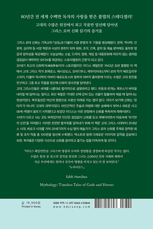 20세기 최고의 신화학자(神話學者)이자 스토리텔러인 이디스 해밀턴은 1942년 초판 발행된 이 책에서 고대 그리스 작가 호메로스, 헤시오도스, 에우리피데스부터 로마 작가 오비디우스, 베르길리우스까지, 더불어 역사학의 아버지 헤로도토스와 철학의 아버지 플라톤에 이르는 수많은 현인의 고대 원전을 연구하고 그중 최고 작품을 엄선해 신화의 정수만을 담아냈다.