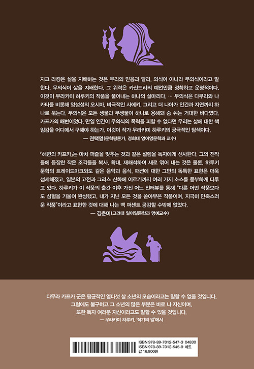 일본을 넘어 세계에서 사랑받는 ‘하루키 월드’의 대표작, 무라카미 하루키 최고의 소설이라는 평론가들의 극찬 속에 『뉴욕타임스』 ‘올해의 책’으로 선정되기도 했던 『해변의 카프카』가 하루키 스타일의 묘미를 오롯이 살린 전면 개정판(제3판)으로 16년 만에 새롭게 출간되었다.