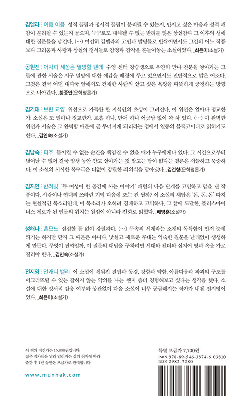 올해 젊은작가상에 이름을 올린 수상 작가는 김멜라 공현진 김기태 김남숙 김지연 성해나 전지영이다. 이 상의 수상자로는 처음 이름을 올린 공현진 김기태 김남숙 성해나 전지영 다섯 명의 등장이 반갑고, 작품세계를 경신하며 세번째로 젊은작가상을 수상하는 김지연의 성취가 뜻깊다. 무엇보다 2021년부터 한 해도 빠짐없이 젊은작가상을 수상하다가 올해 마침내 심사위원 만장일치로 대상의 영예를 안은 김멜라의 쾌거가 값지다. 우리 삶의 한 장면을 흥미진진한 상상력으로 풀어낸 이 일곱 편의 소설은 독자에게 밀도 높은 공감을 안길 뿐 아니라 독서 그 자체의 즐거움을 만끽하게 하는 새봄의 선물이 되어줄 것이다.